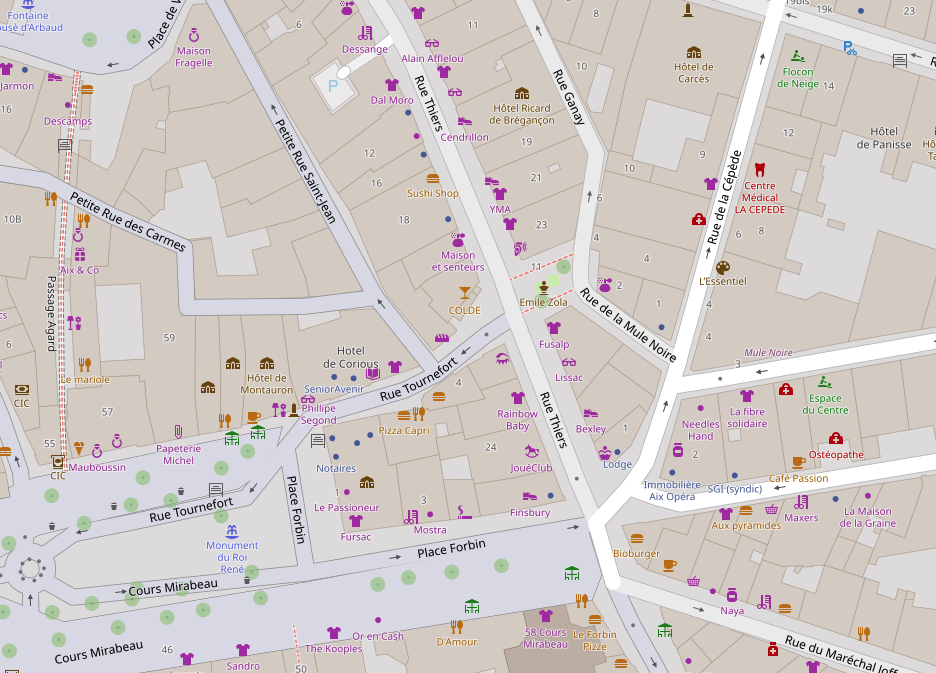 Le centre ville d’Aix-en-Provence étant piéton, vous pouvez trouver plusieurs parking (payant). Le plus proche étant le parking Carnot (400m)